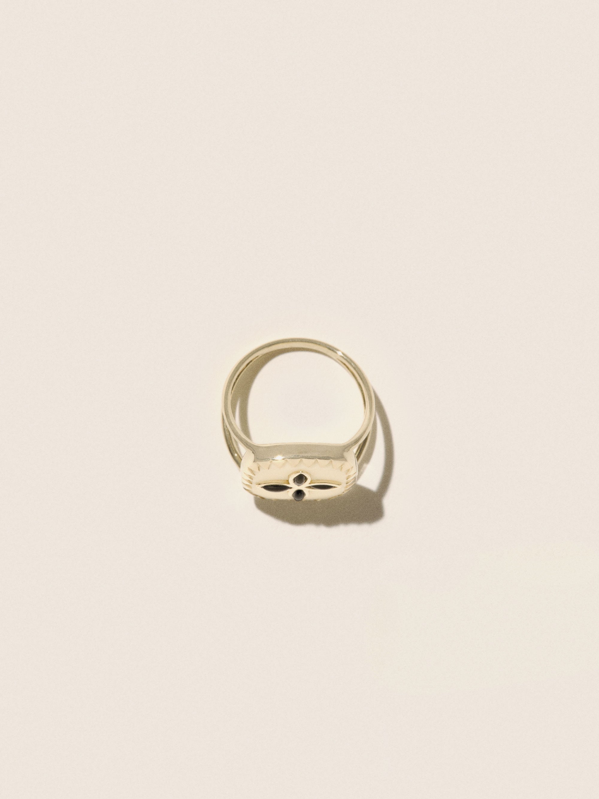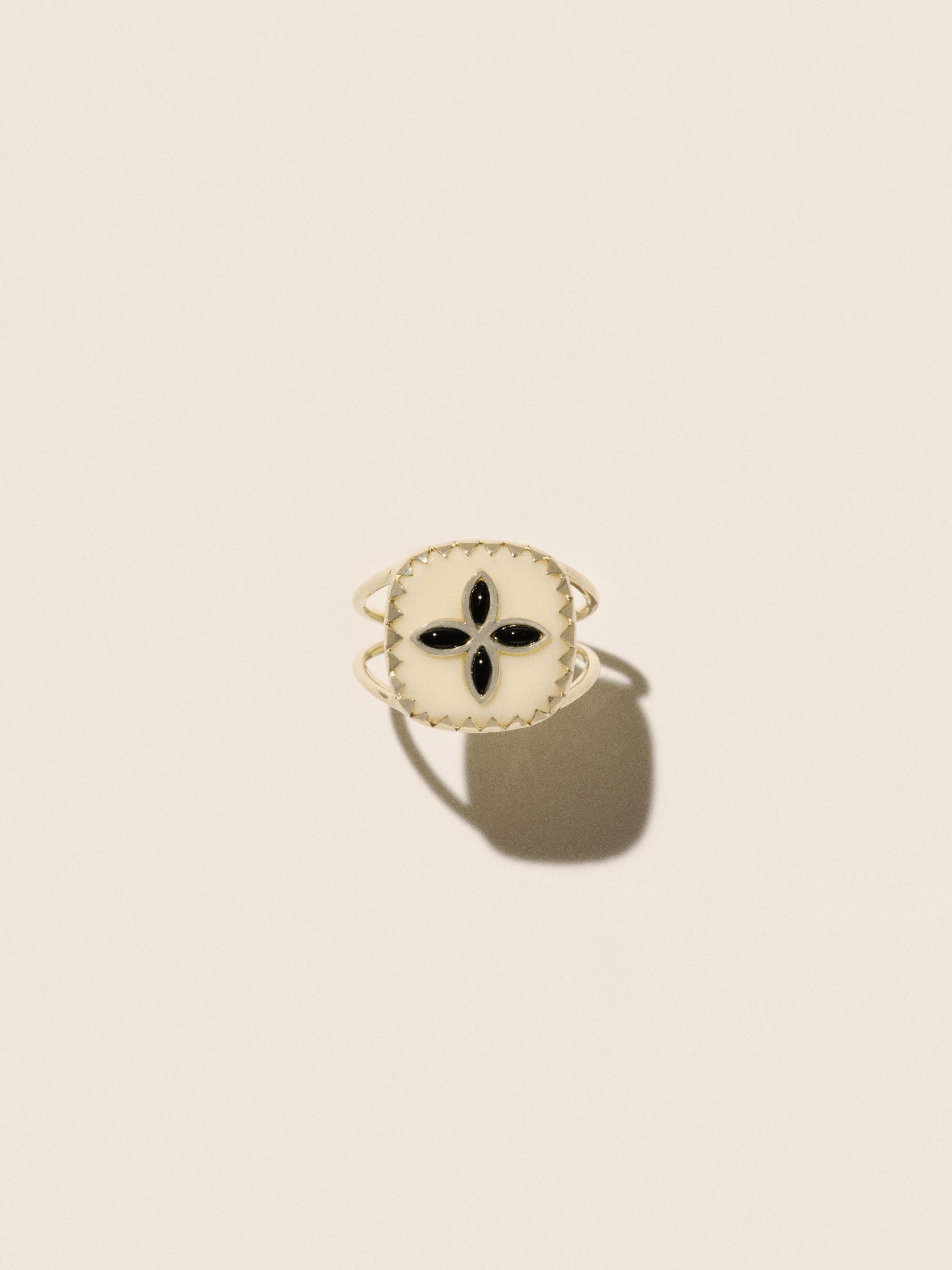 9kt geelgouden ring ingelegd met wit hars en zwarte onyx