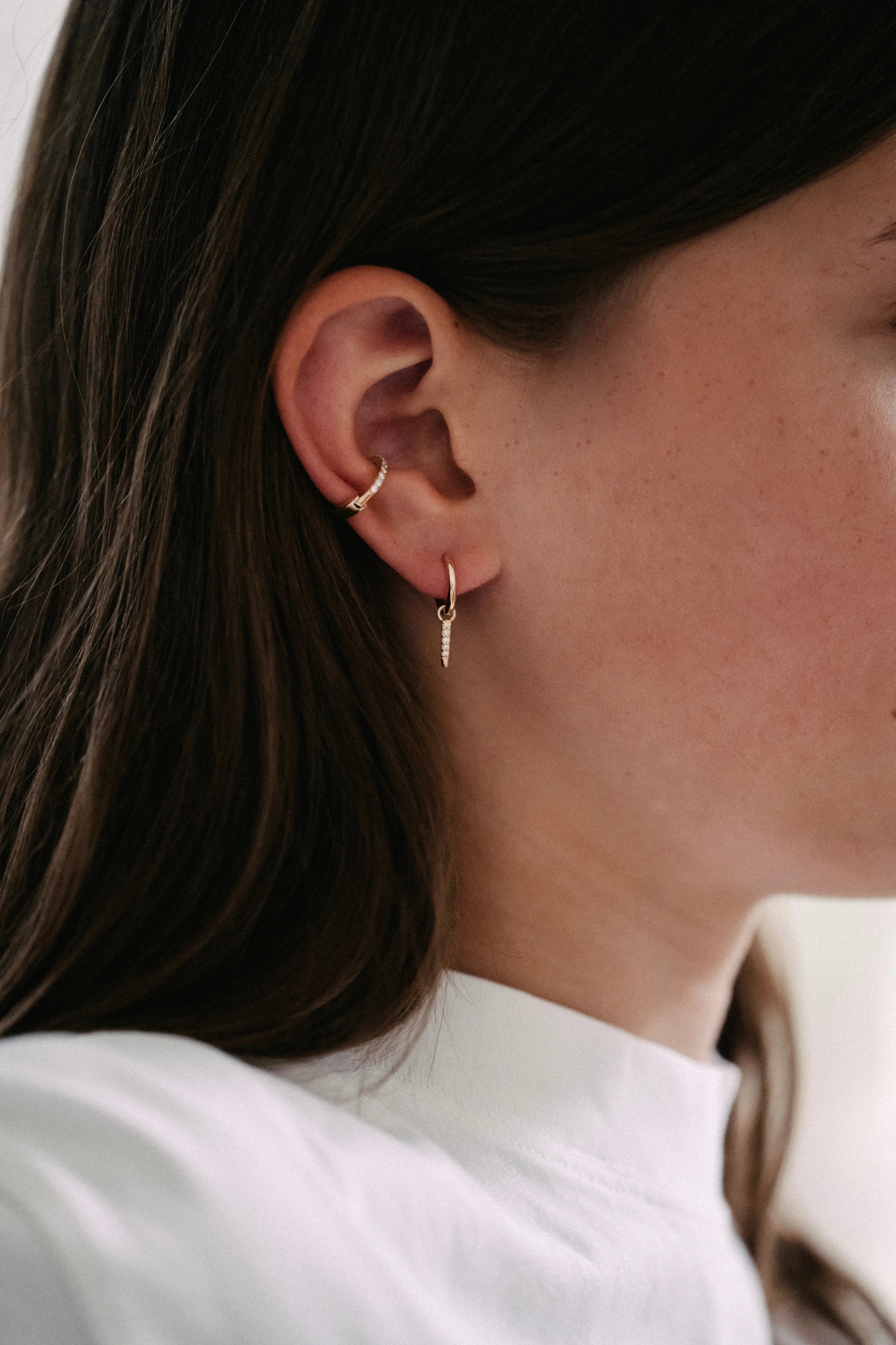 De sieraden kenmerken zich door de verfijning, discreet maar toch spectaculair in hun detail, markeren de ringen en oorbellen een elegante aanwezigheid die onvermijdelijk straalt.