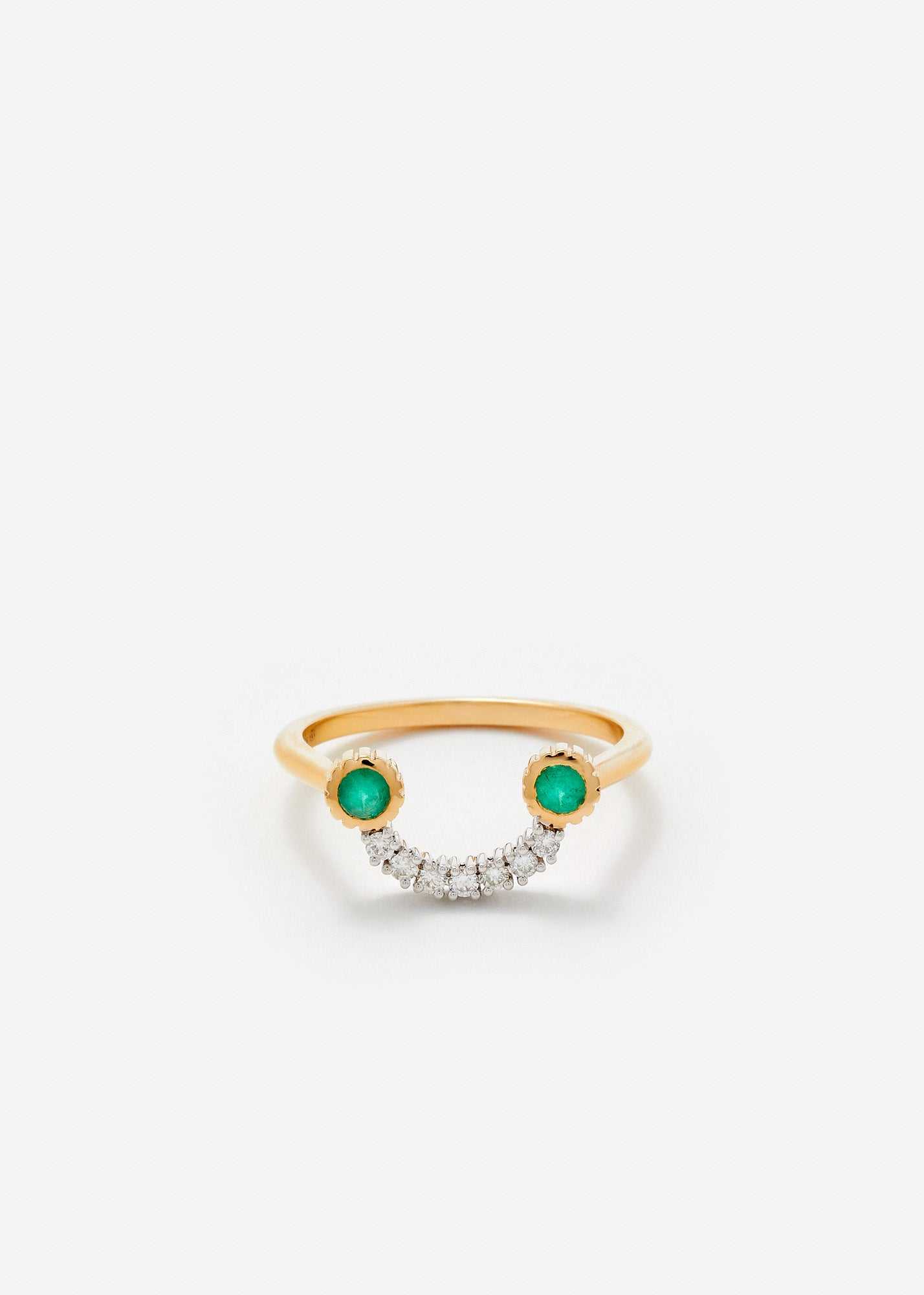 18kt Geelgouden ring met een smiley van grijze diamant en emerald.