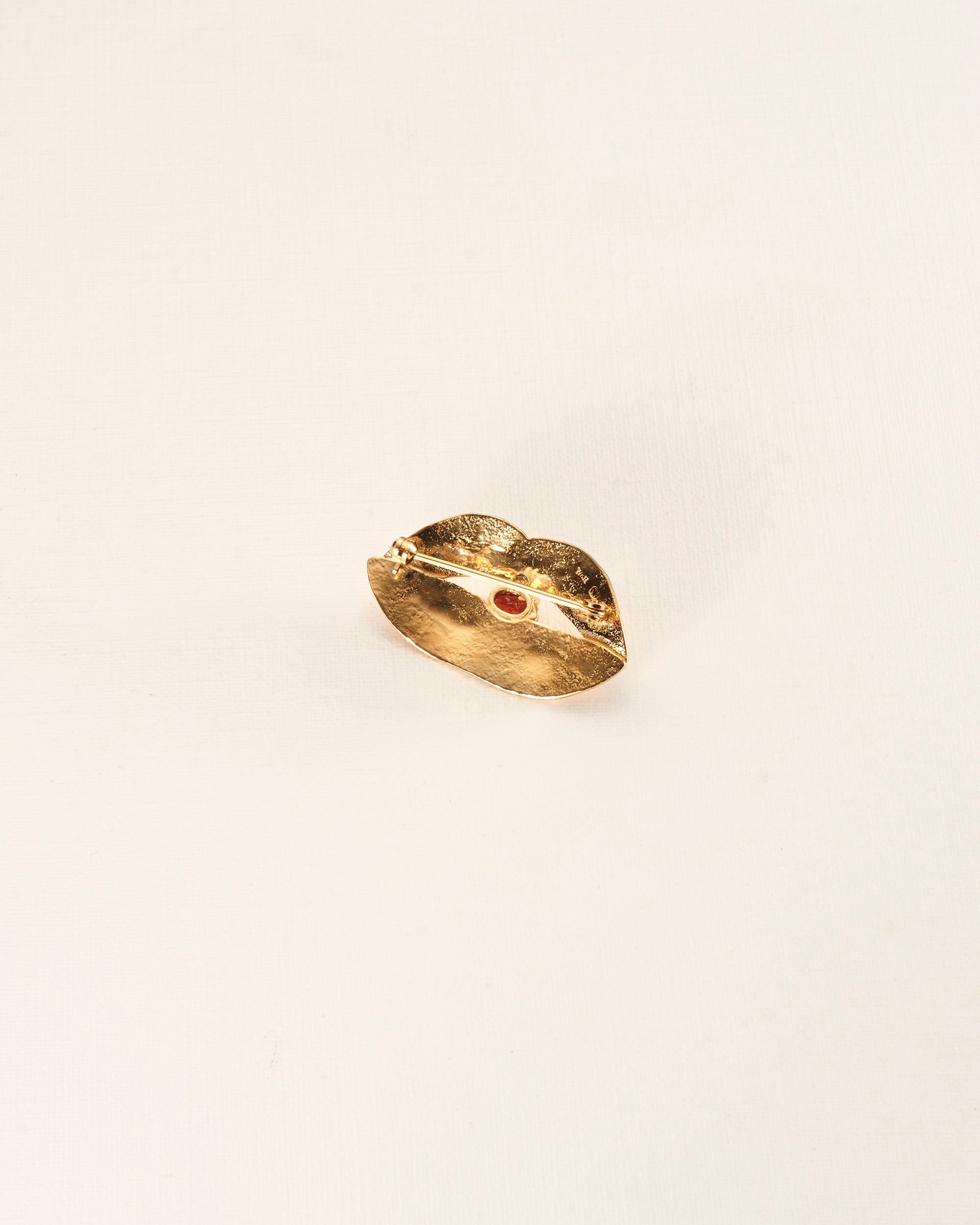 Kleine lipbroche met granaat in gold plated