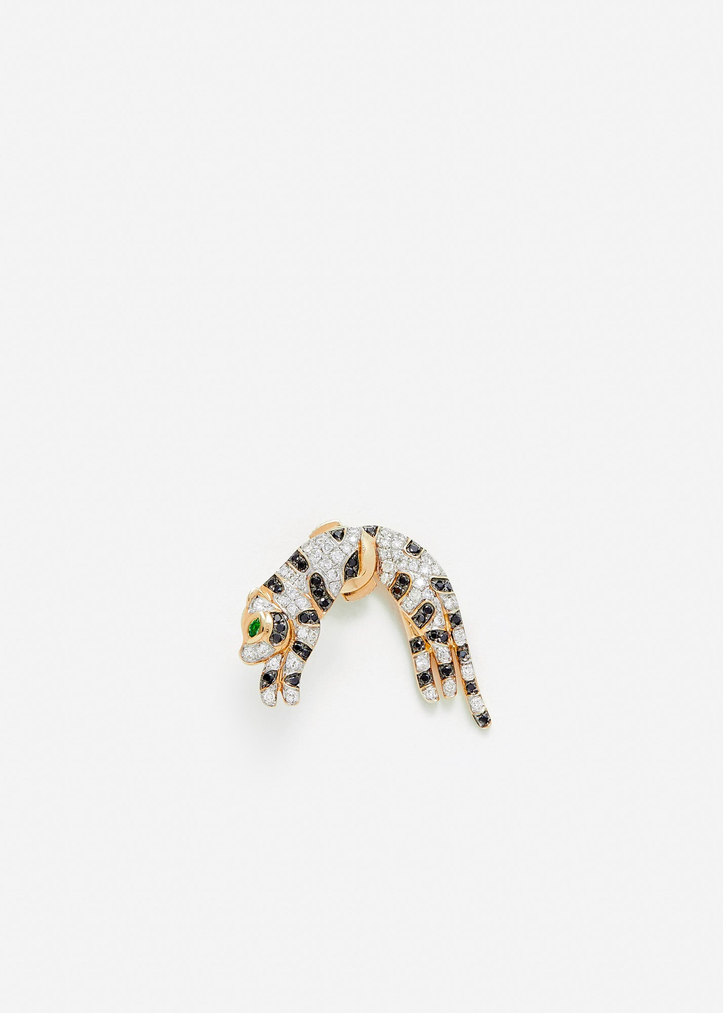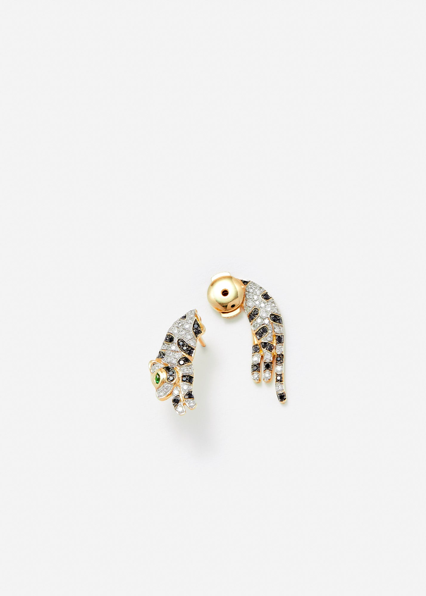 Stud en earjacket in 9kt geelgoud in de vorm van een panter met grijze- en zwarte diament en tsavoriet.
